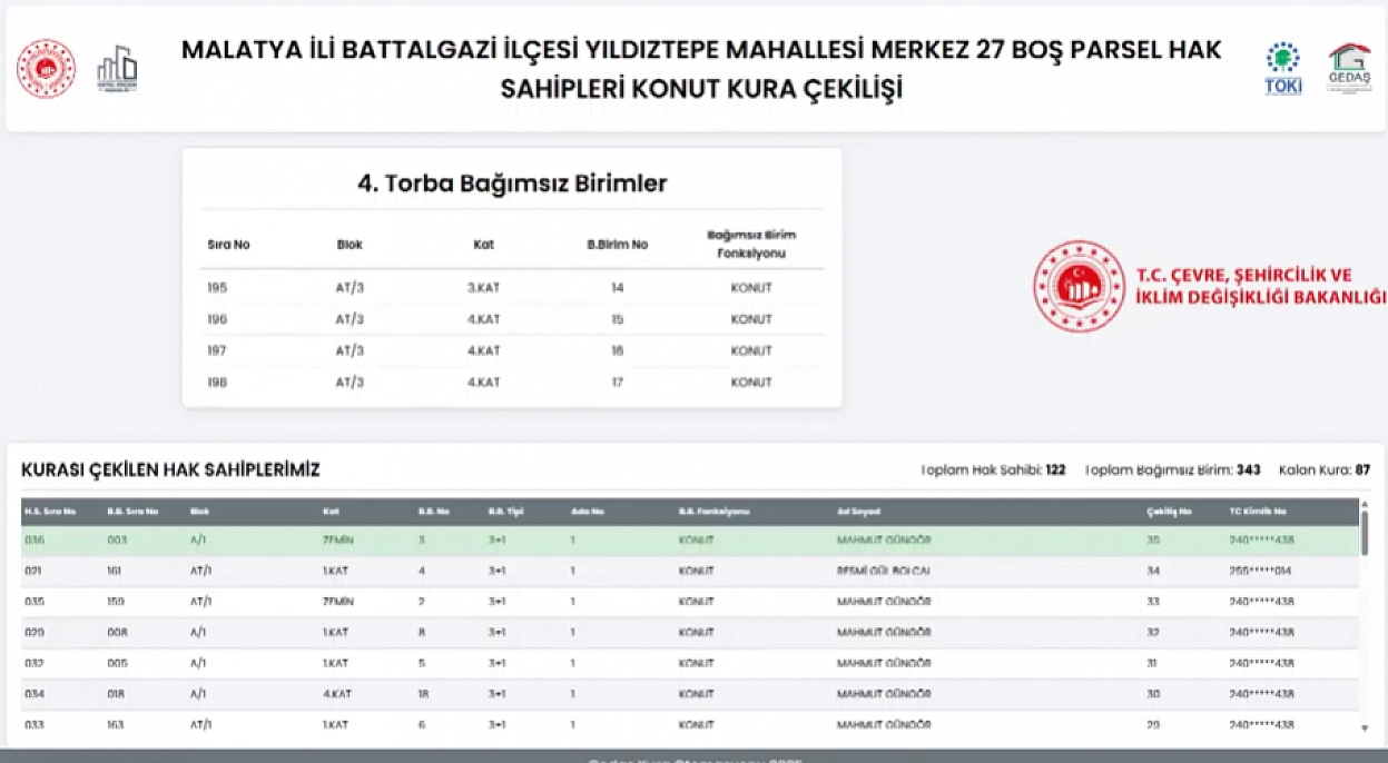 Malatya'da boş parsel hak sahipleri belli oldu! İşte tam liste
