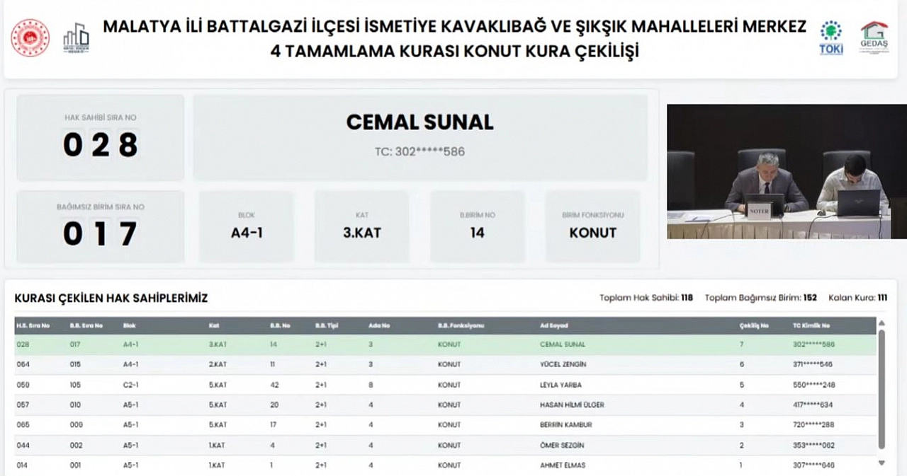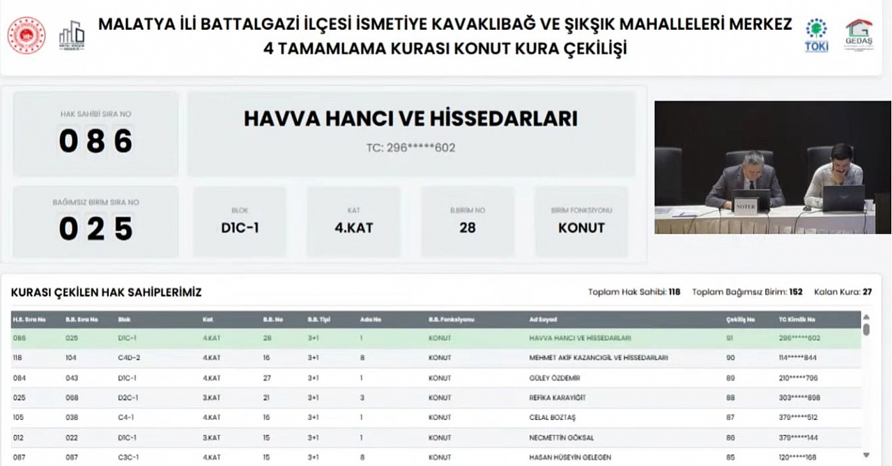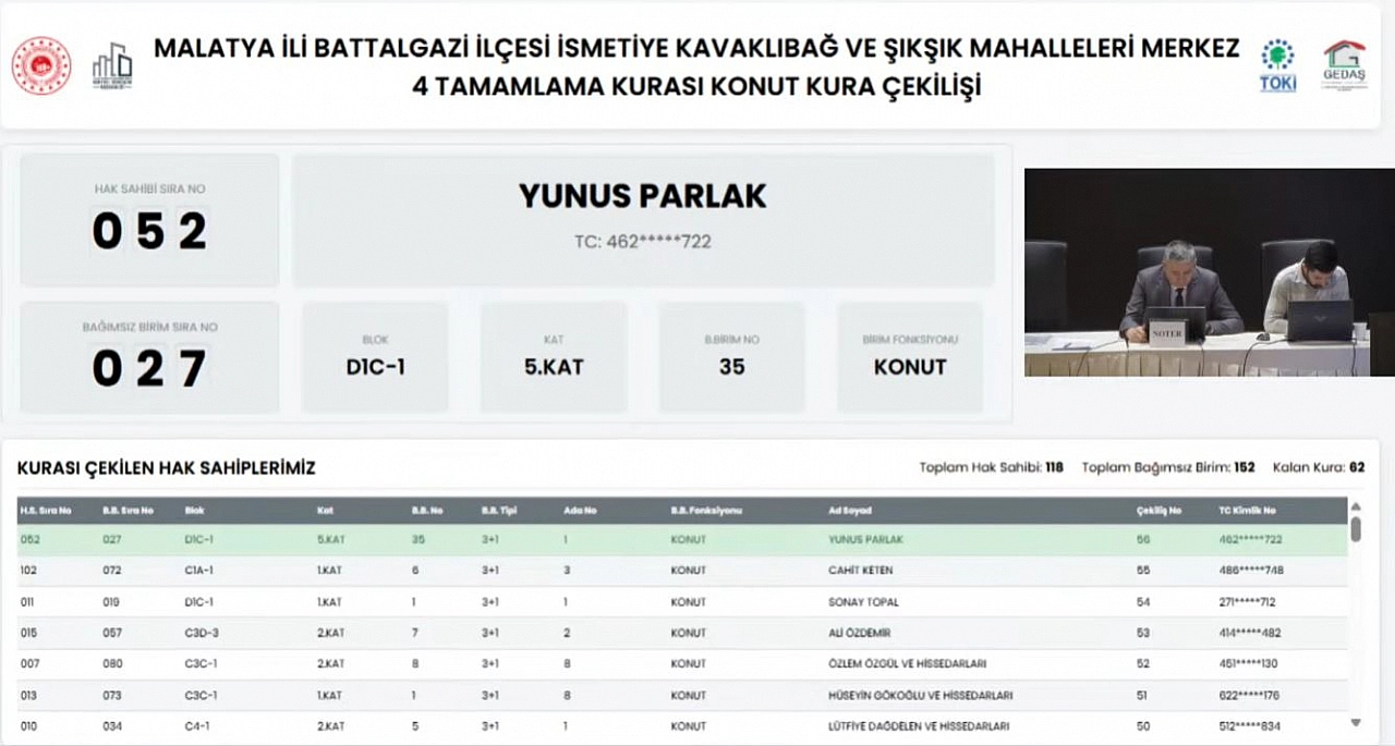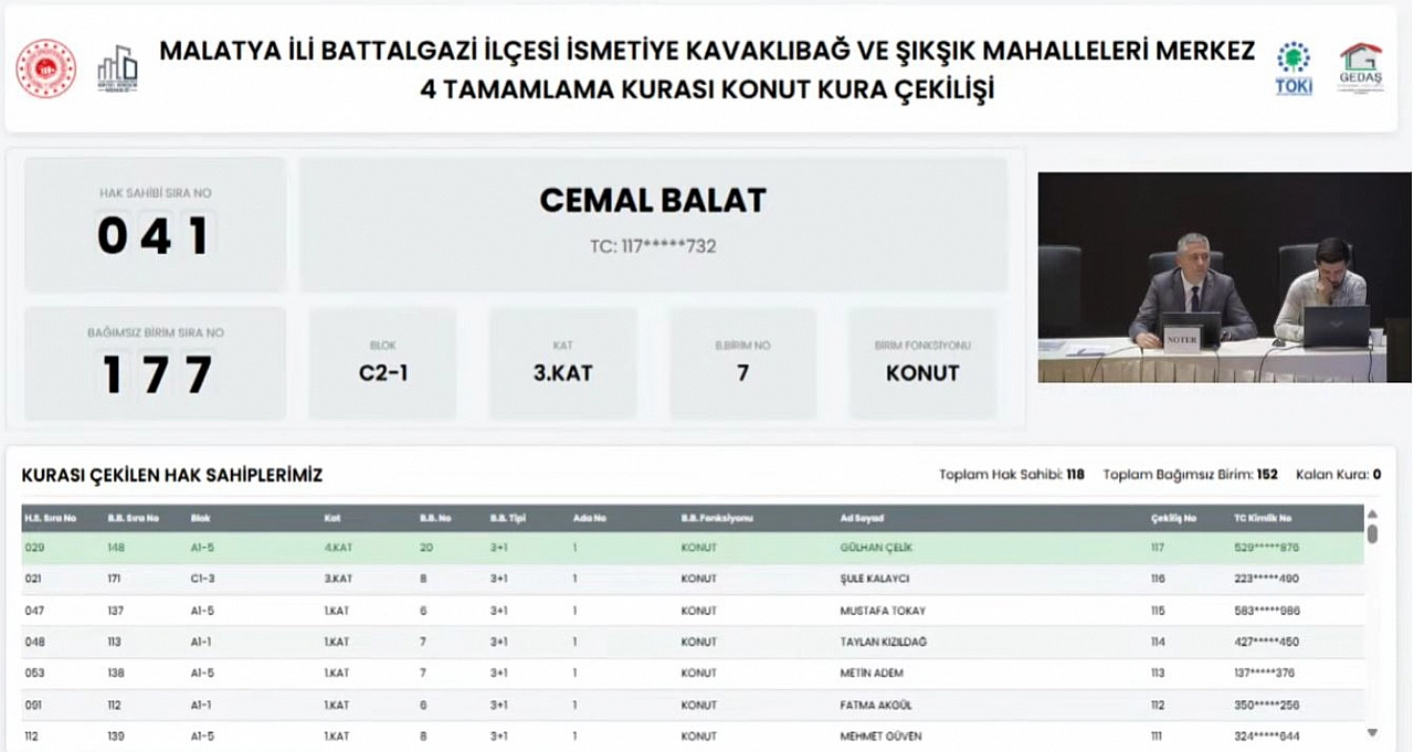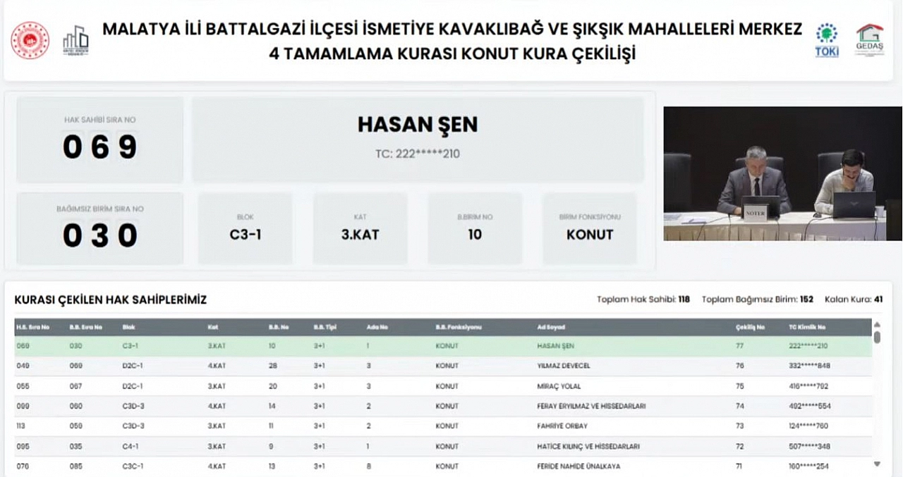 Malatya’da depremzede vatandaşların heyecanla beklediği kura çekilişi, kısa süre sonra Kentsel Dönüşüm Başkanlığı’nın resmi YouTube kanalından noter huzurunda canlı olarak yayınlandı.
