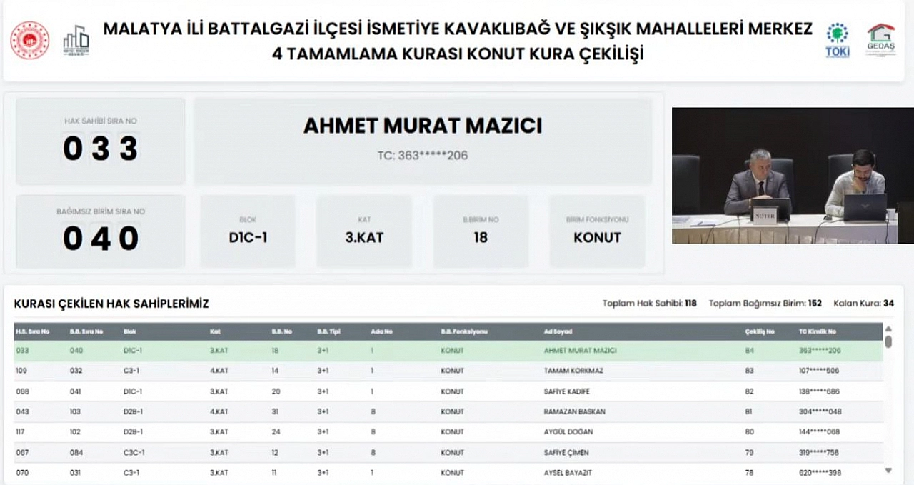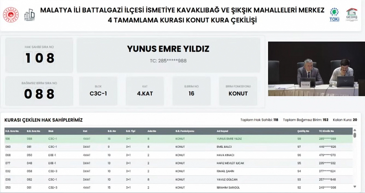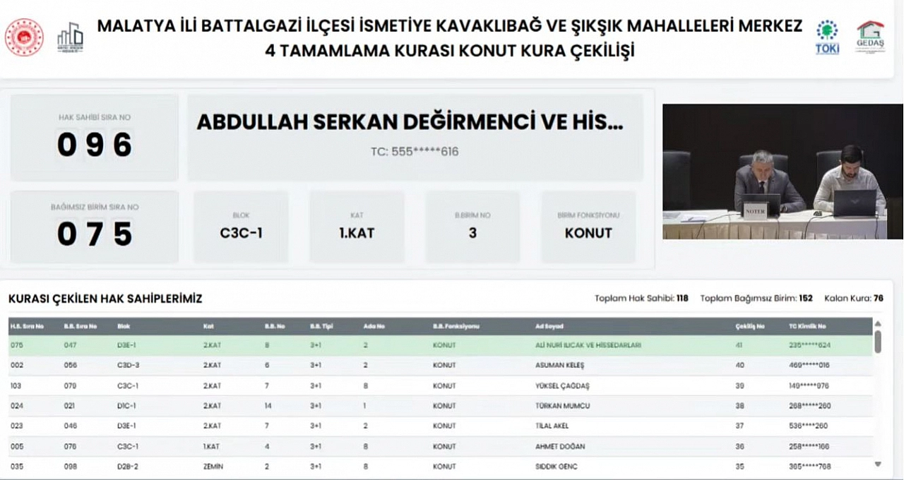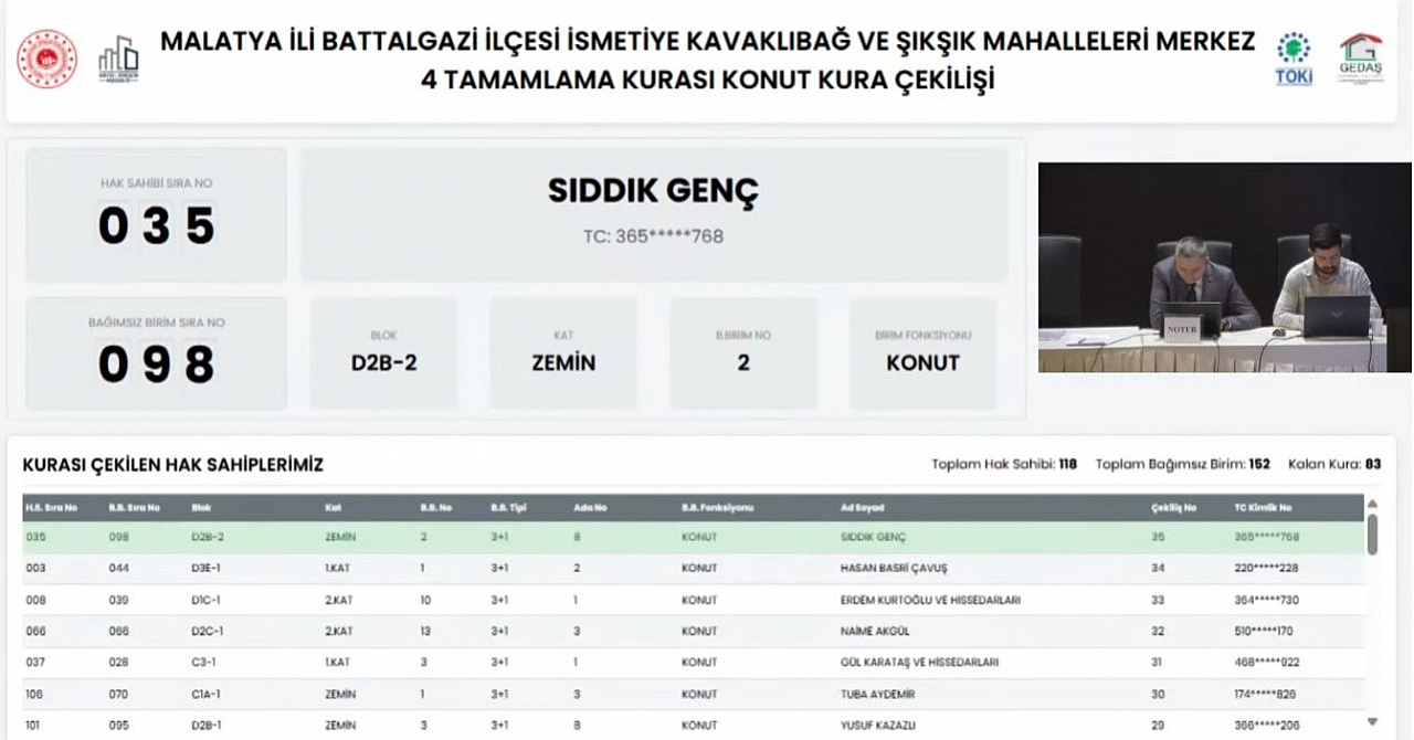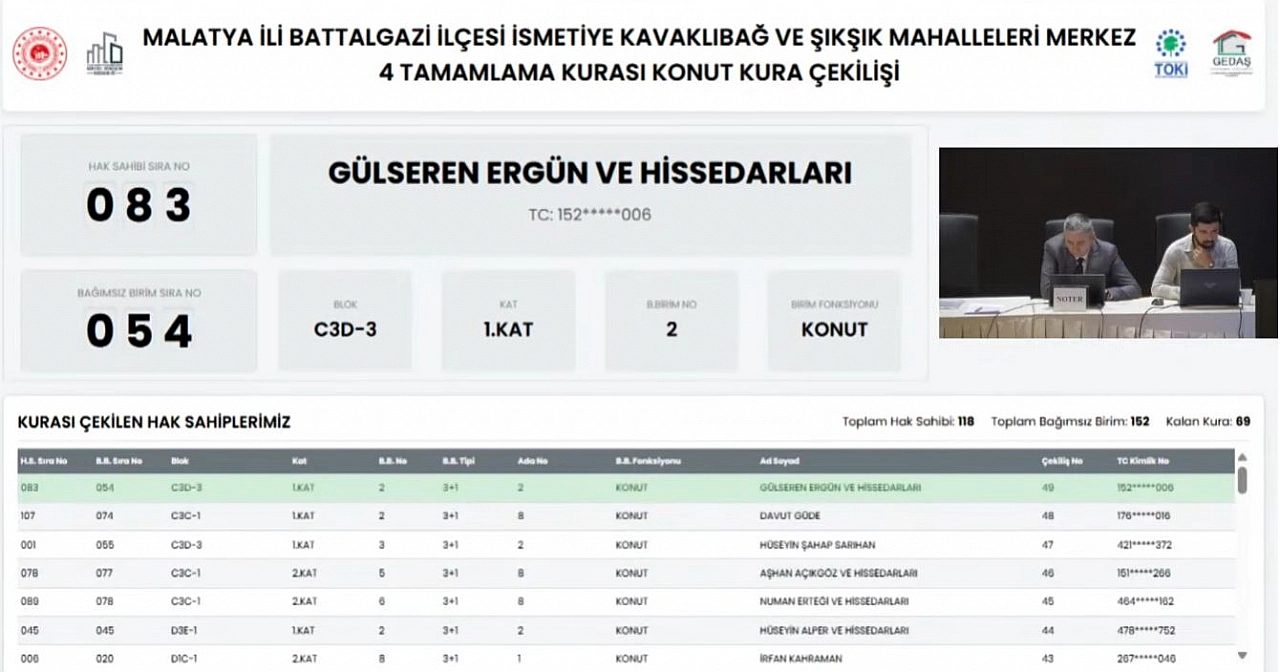 Malatya’da depremzede vatandaşların heyecanla beklediği kura çekilişi, kısa süre sonra Kentsel Dönüşüm Başkanlığı’nın resmi YouTube kanalından noter huzurunda canlı olarak yayınlandı.