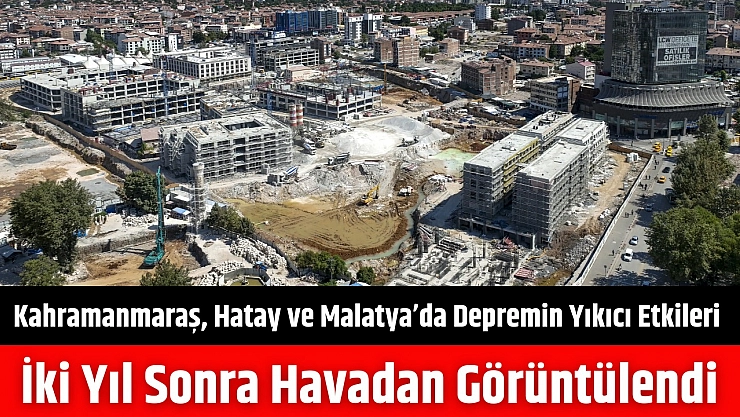 Kahramanmaraş merkezli depremlerin büyük yıkıma neden olduğu il merkezleri, afetin ikinci yılında havadan görüntülendi.