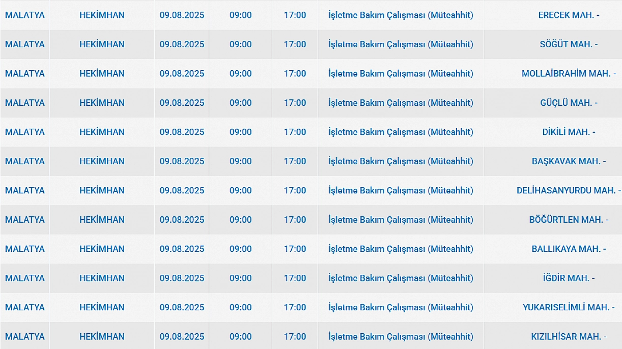 - Malatya'da elektrik kesintisi! 09 Ağustos 2025 Malatya elektrik kesintisi listesi...