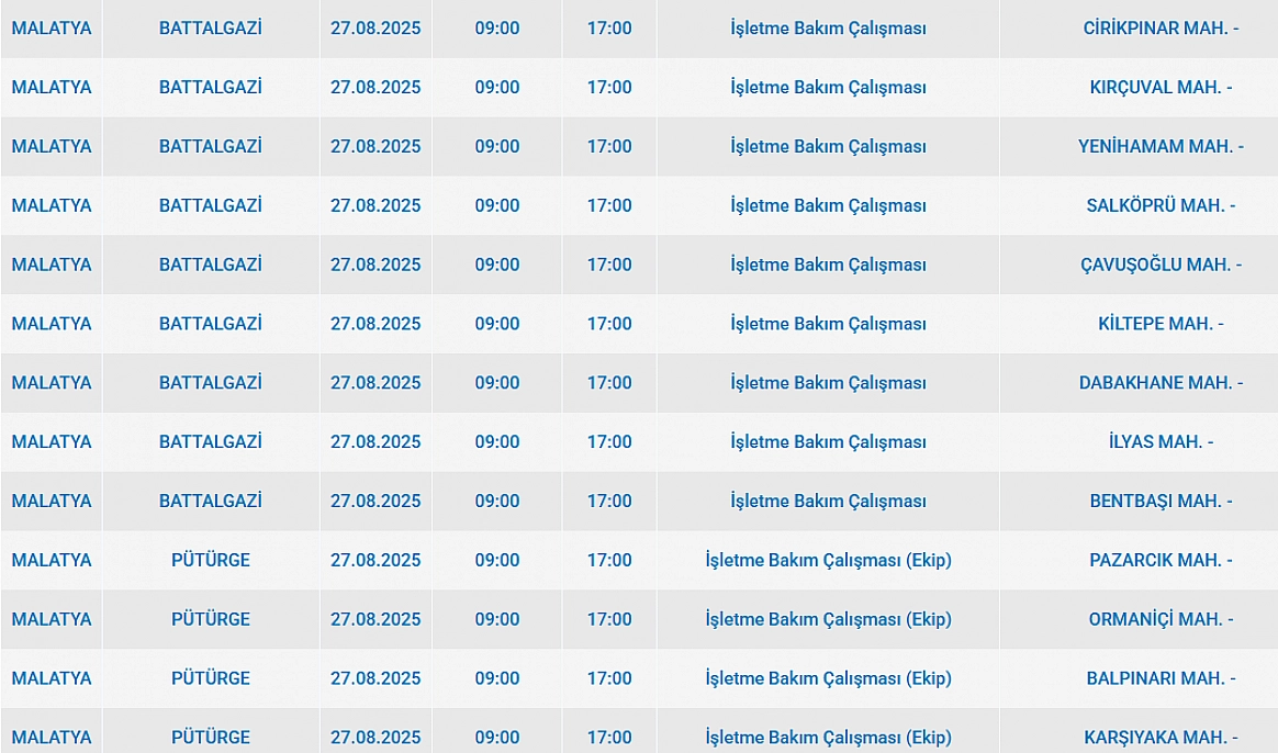 • Malatya'da elektrik kesintisi! 27 Ağustos 2025 Malatya elektrik kesintisi listesi...