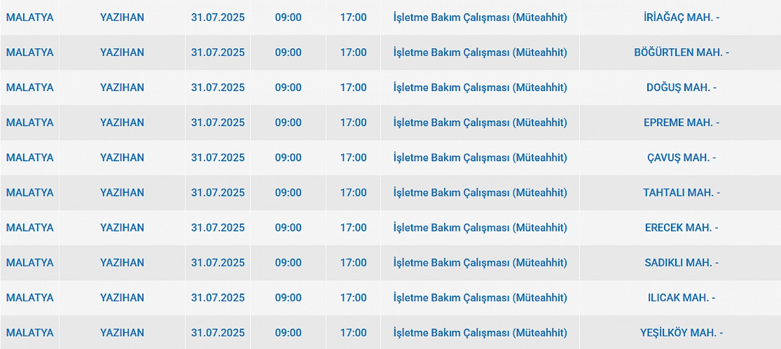 Malatya'da elektrik kesintisi! 31 Temmuz 2025 Malatya elektrik kesintisi listesi...