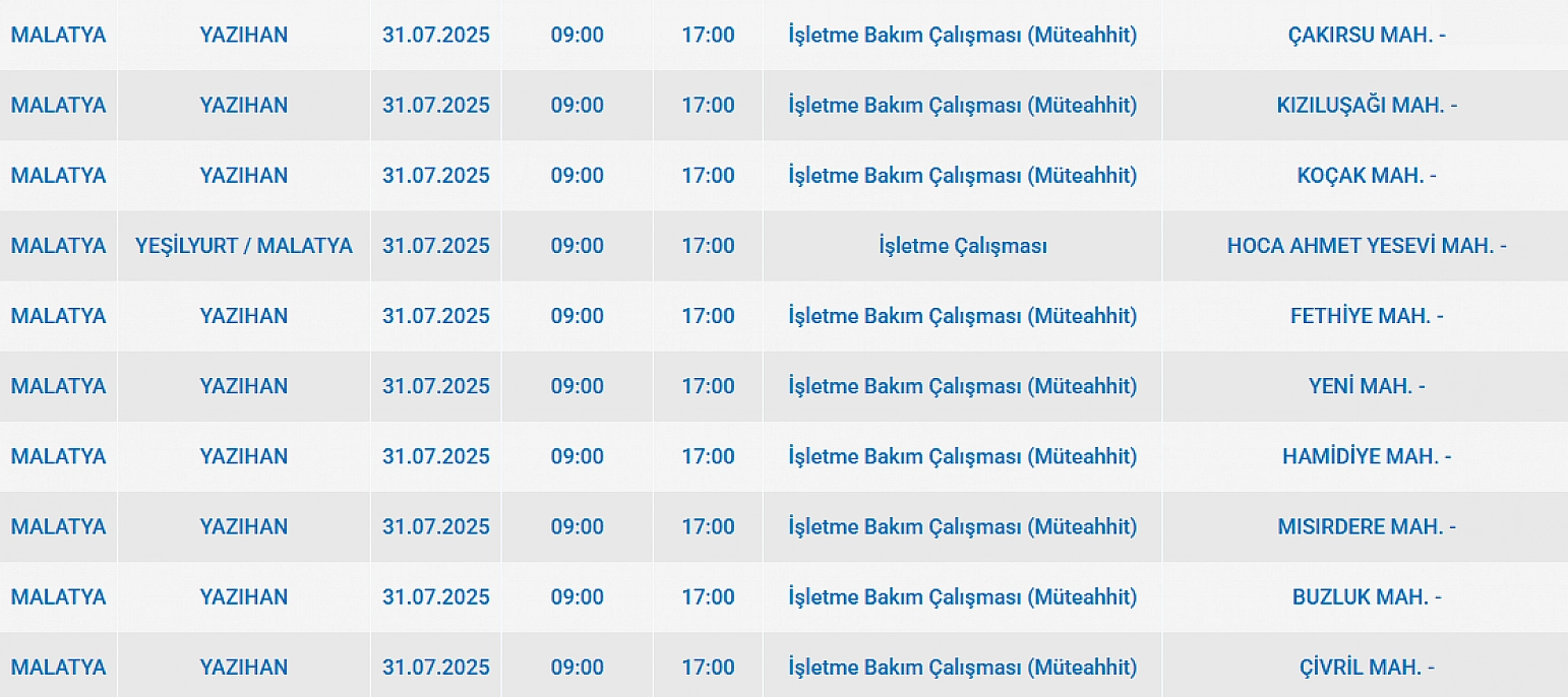 Malatya'da elektrik kesintisi! 31 Temmuz 2025 Malatya elektrik kesintisi listesi...