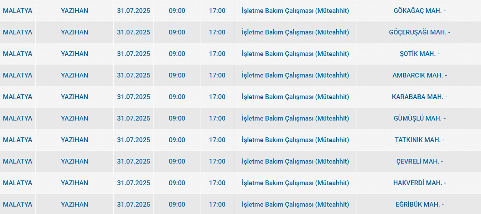 Malatya'da elektrik kesintisi! 31 Temmuz 2025 Malatya elektrik kesintisi listesi...