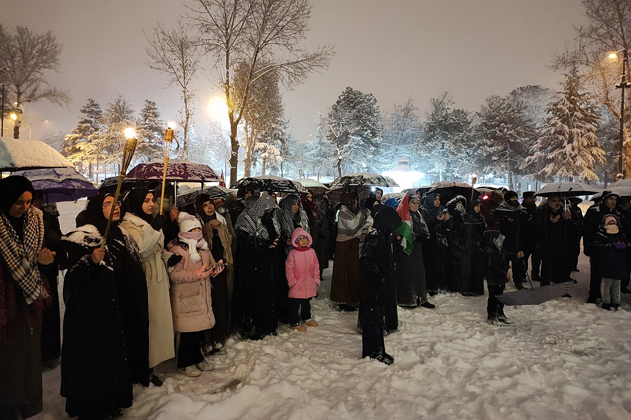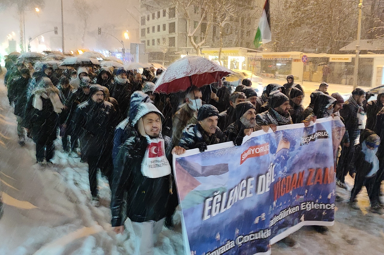 Malatya'da yoğun kar yağışı altında Gazze için 'Eğlence değil, vicdan zamanı' yürüyüşü