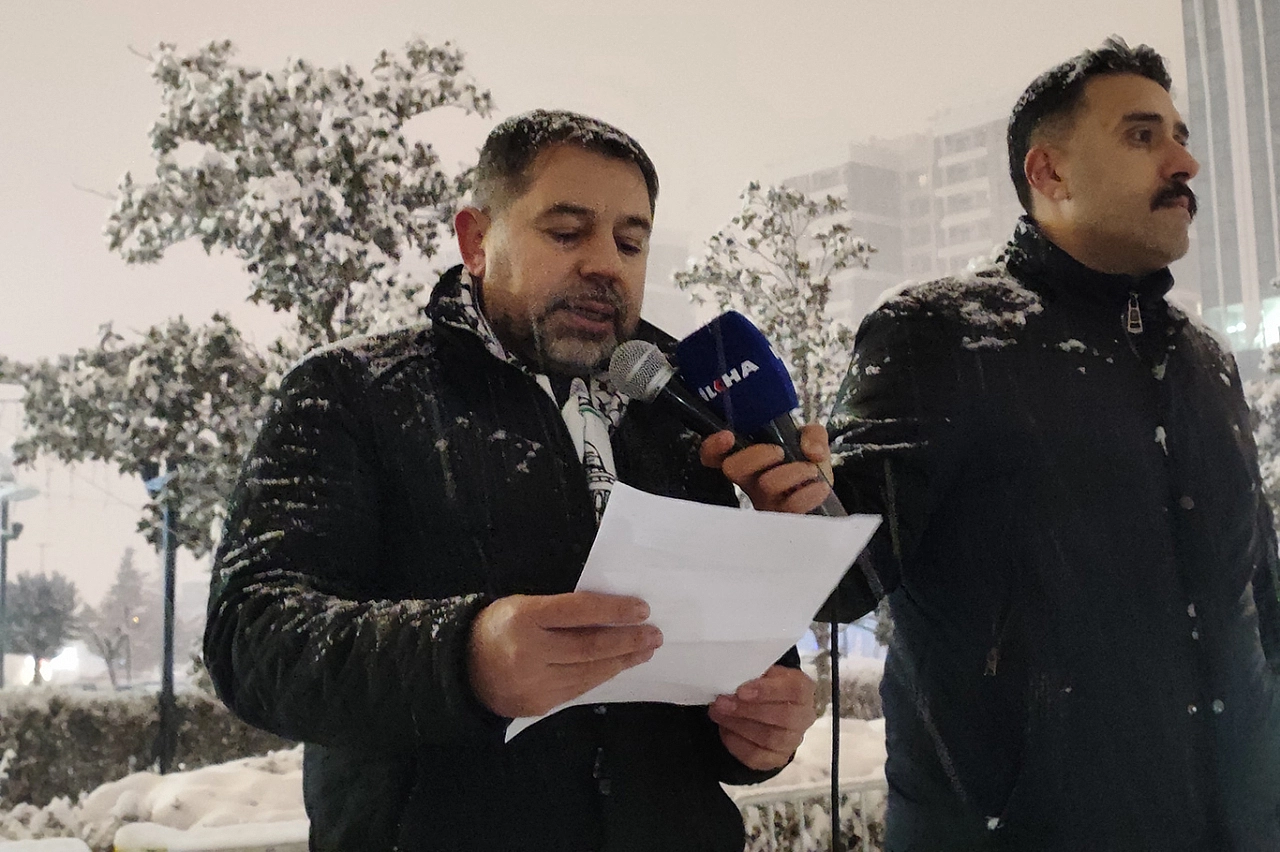 Burada Kur'an-ı Kerim tilavetinin ardından basın açıklamasını Kudüs Kardeşlik Platformu adına Özmen Düz okudu.
