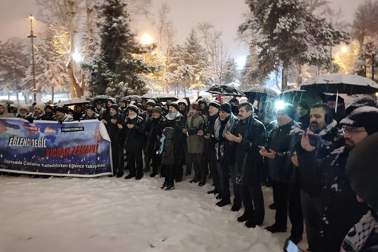 Malatya'da Kudüs Kardeşlik Platformu öncülüğünde düzenlenen yürüyüşte, Gazze'de yaşanan insanlık dramına dikkat çekilerek, "Dünyada çocuklar katledilirken eğlence masum değildir" denilerek, yılbaşı kutlamalarına tepki gösterildi.
