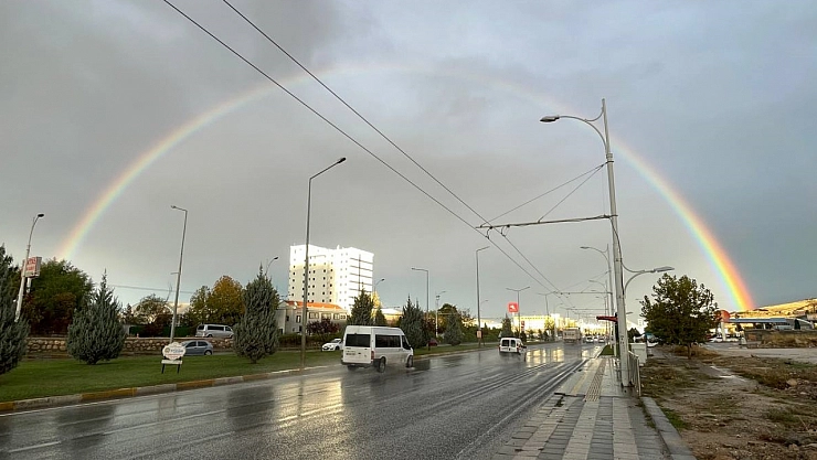 Malatya'da sağanağın ardından Malatya-Elazığ kara yolu Battalgazi ilçesi Çamurlu Mahallesi yakınlarında ortaya çıkan gökkuşağı, güzel görüntü oluşturdu.