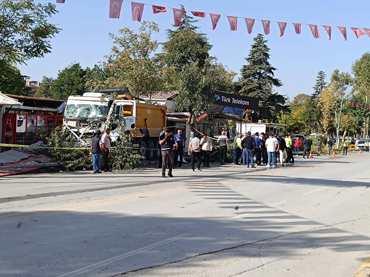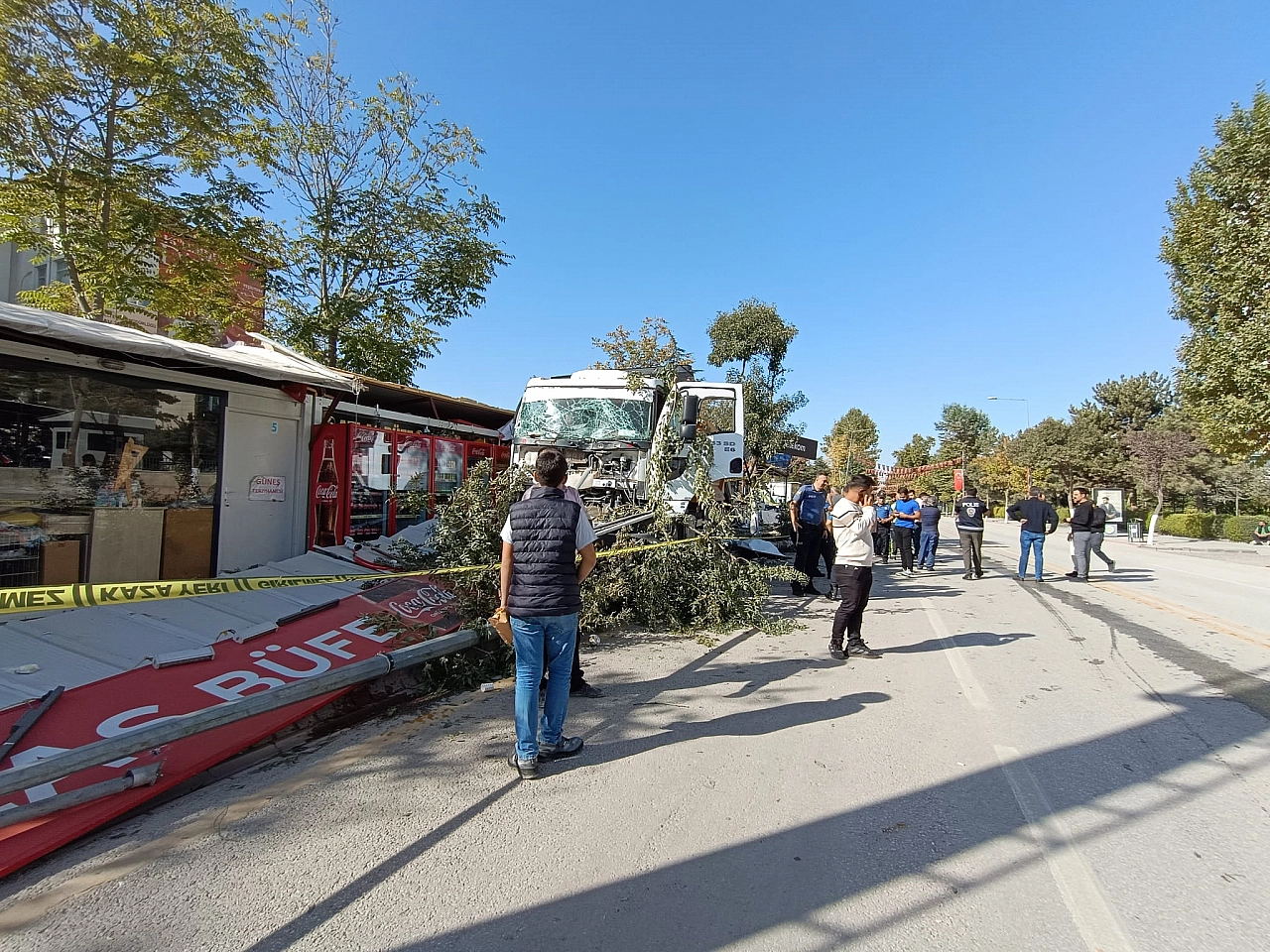 Kontrolden çıkan kamyon, büyük bir panik yaratarak önce kaldırıma çıktı. Ardından, Halk Eğitim Merkezi önünde yol kenarında bulunan ve peş peşe sıralı haldeki birden fazla iş yeri konteynerine çarparak durabildi.