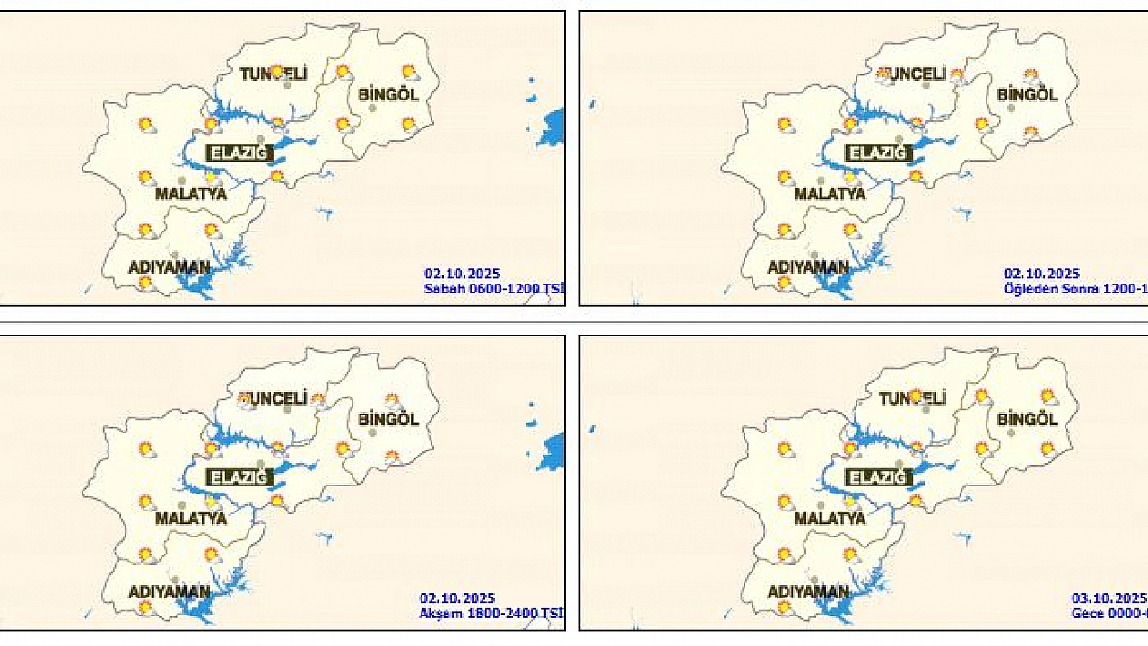 Meteoroloji Genel Müdürlüğü (MGM), 02 Ekim Perşembe gününe dair hava durumu raporunu paylaştı. Meteorolojinin raporuna göre, Malatya genelinde havanın parçalı ve az bulutlu geçeceği, hava sıcaklıklarının mevsim normallerinin 1 ila 3 derece altında seyretmesi bekleniyor.