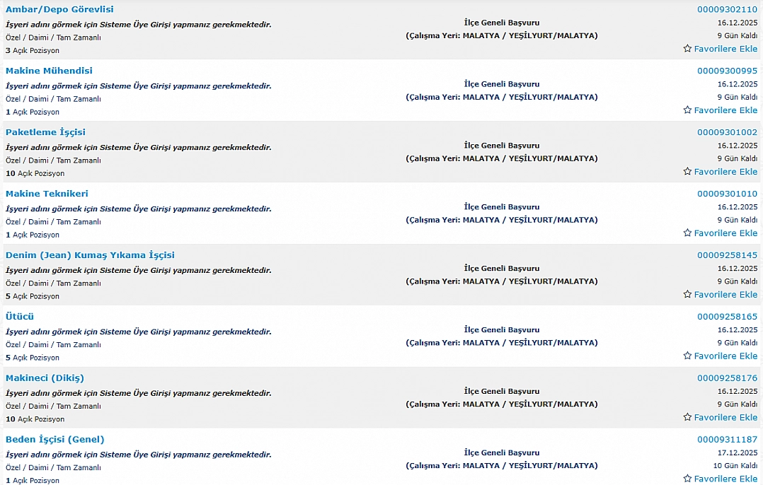 İŞKUR, Malatya'da farklı sektörlerde istihdam edilmek üzere toplam 239 kişilik personel alımı yapılacağını duyurdu. Psikolojik Danışman, Elektrostatik Boya Operatörü, Kaynak Mühendisi, Pazarlamacı, Raylı Sistemler Makine Teknisyeni, İnşaat Mühendisi, Makineci (Dikiş) gibi birçok pozisyonda istihdam sağlanacak. İşte detaylar…