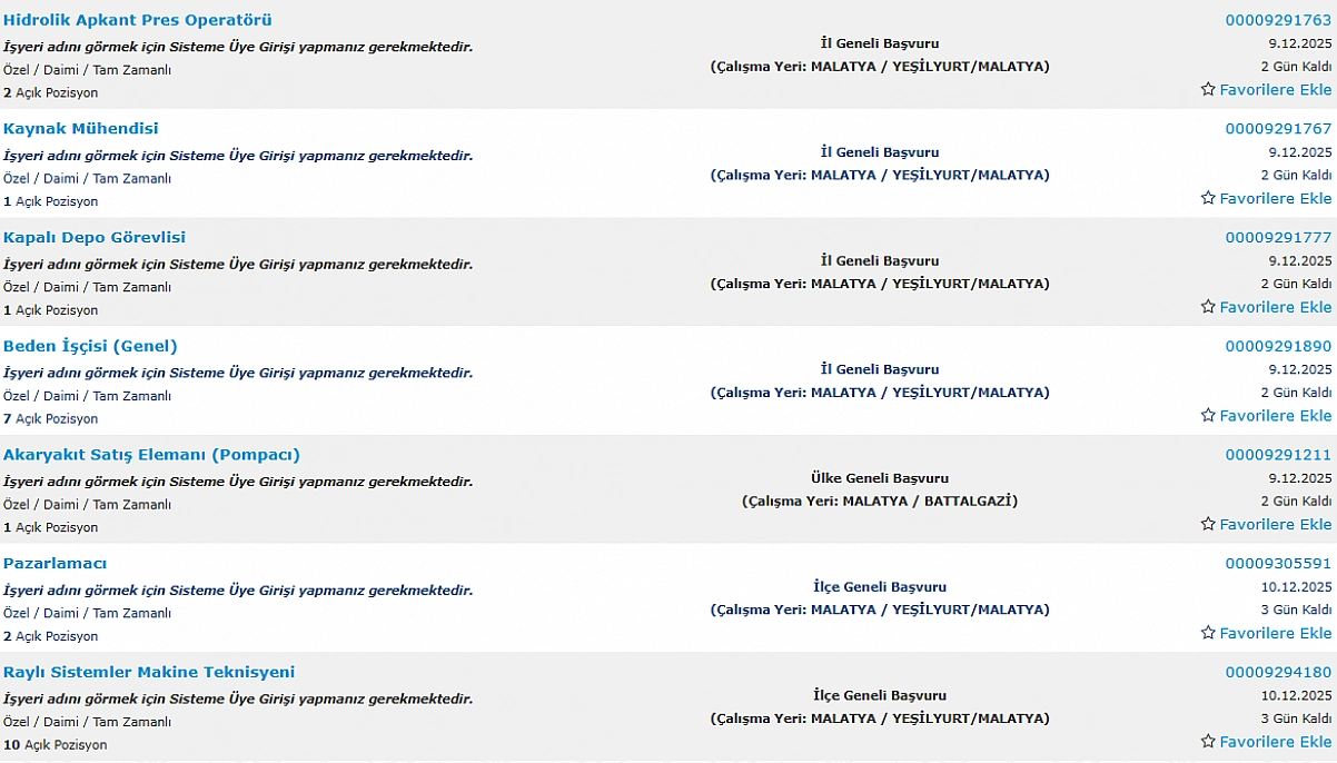 Malatya'da iş arayanlara müjde: 239 personel alımı başlıyor…