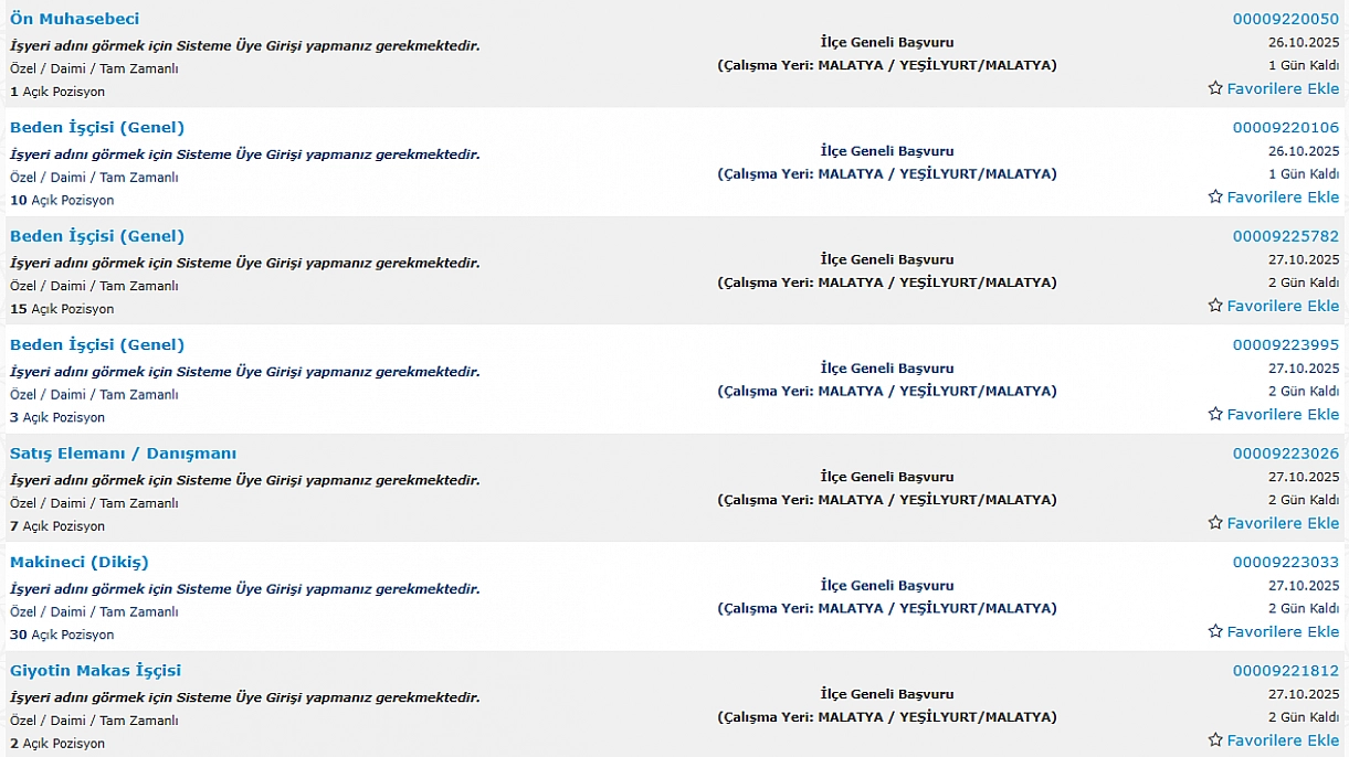 İŞKUR, Malatya'da farklı sektörlerde istihdam edilmek üzere toplam 290 kişilik personel alımı yapılacağını duyurdu. Ahşap Mobilya İmalat Ustası, Ön Muhasebeci, Makineci (Dikiş), Konfeksiyon İşçisi, Depo Sevkiyat Sorumlusu, E-Ticaret ve Pazarlama Elemanı, Tahin İmal İşçisi gibi birçok pozisyonda istihdam sağlanacak. İşte detaylar…
