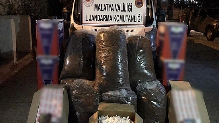 Malatya İl Jandarma Komutanlığı görevlilerince, Malatya -Elazığ karayolu Kale ilçesi Kömürhan Köprüsü yol kontrol noktasında şüphe üzerine ticari bir araç durduruldu. Alınan arama kararına istinaden bagaj bölümünde yapılan aramada, 300 kilogram kıyılmış tütün ile 10 bin adet faturasız Makaron ele geçirildi.
