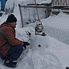 Soğuk havaya aldırış etmeden çayını demleyip içen Demirkaya, kar yağışının tadını çıkararak renkli görüntüler oluşturdu. Vatandaşların ilgisini çeken kardan soba görenleri hem şaşırttı hem de gülümsetti.
