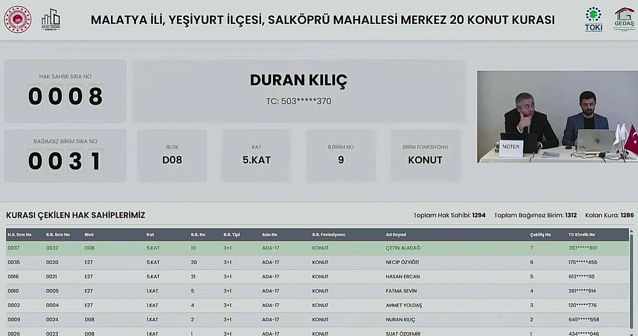 6 Şubat depremlerinde büyük yıkım yaşayan Malatya'da, konut, iş yeri ve kırsal konut inşa çalışmaları hızla devam ediyor. 12 Aralık'ta gerçekleştirilen kura çekimiyle birlikte Malatya'da toplam bin 294 konut hak sahipleri belirlendi. Peki, Yeşilyurt ilçesinde kimlere konut çıktı? İşte detaylar…