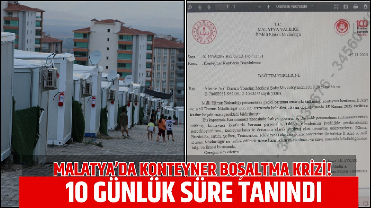 Malatya'da, eğitim-öğretim yılının tam ortasında konteynerde kalan öğretmenlerin 10 gün içinde konteynerleri boşaltması istendi. Duruma tepki gösteren Eğitim Gücü Sen İl Başkanı Yusuf Yılmazoğlu, Milli Eğitim Bakanlığının 'Barınma sorunu asla yaşanmayacak' taahhüdünün yok sayıldığını ifade etti.