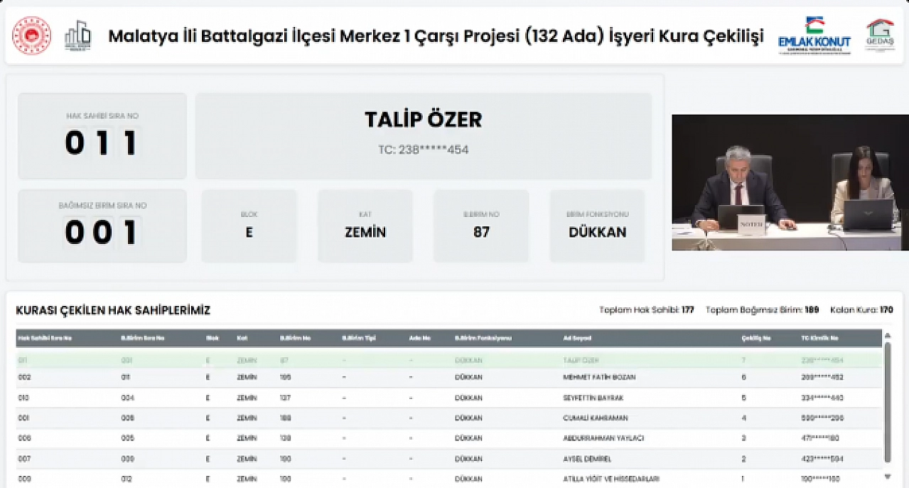 6 Şubat depremlerinin ardından Malatya'nın birçok noktasında kalıcı konut ve iş yeri projeleri tamamlandı. Battalgazi ilçesindeki Merkez 1 Çarşı Projesi (132 ADA) rezerv alan içerisinde yer alan 103 dükkân, 86 ofis toplam 189 iş yerinin gerçekleştirilen kura çekimiyle hak sahipleri belli oldu. İşte detaylar…