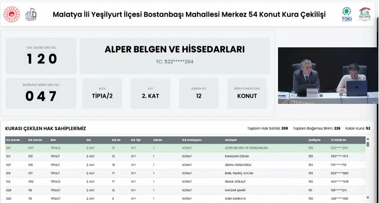 Malatya'da Kura Çekimi Başlıyor! Merkez 54 Projesi'nin Kura Çekimini Canlı izlemek İçin Tıklayın…