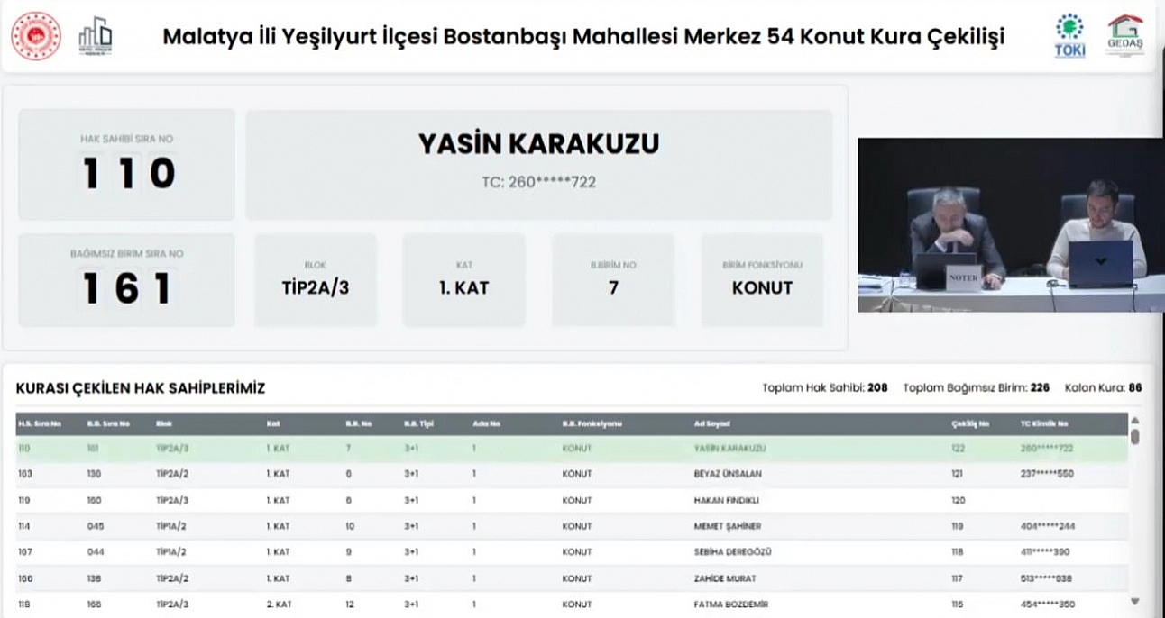Malatya'da kura heyecanı! Bostanbaşı'nda 208 konutun hak sahipleri belli oldu…