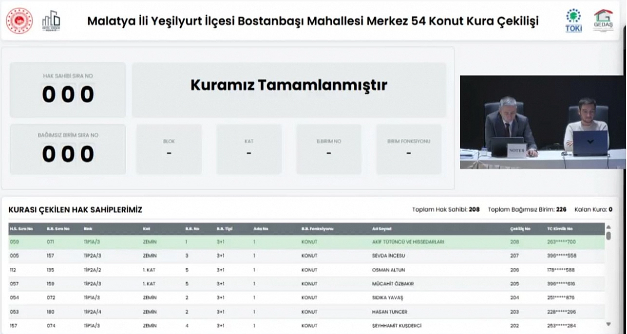 Malatya'da Kura Çekimi Başlıyor! Merkez 54 Projesi'nin Kura Çekimini Canlı izlemek İçin Tıklayın…