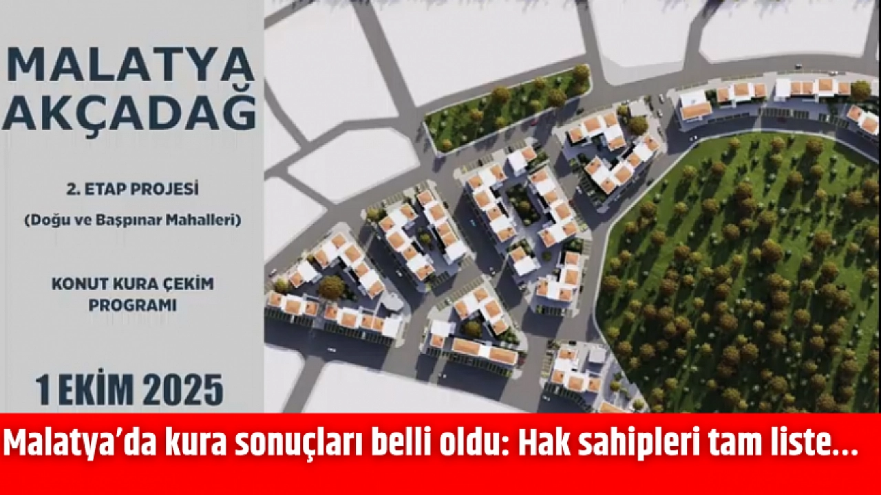 Malatya'da 6 Şubat 2023'teki depremlerde yıkılan veya ağır hasar gören ve yapımı tamamlanan konutların kurası çekiliyor. Akçadağ ilçesinde 2. Etap Projesi kapsamında Doğu ve Başpınar Mahallelerinde 207 konutun kura çekiminin sonuçları belli oldu.