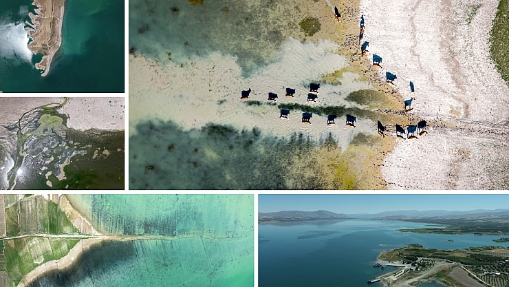 Su havzası Diyarbakır, Elazığ ve Malatya'ya kadar uzanan barajın Malatya kesimindeki su çekilmesi dronla görüntülendi.
