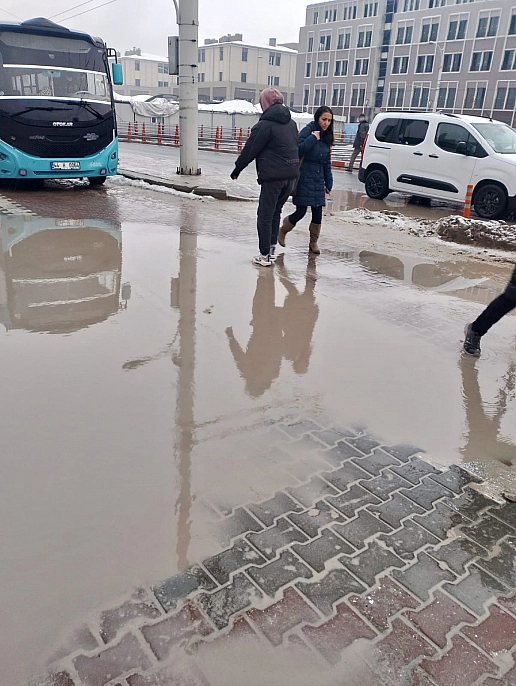 Malatya'da günlerdir etkili olan kar yağışının ardından eriyen kar suları, merkez ilçelerde yol ve otobüs duraklarında büyük su birikintilerine neden oldu. Sabah saatlerinde işe gitmekte zorlanan vatandaşlar, yaşananlara tepki göstererek yetkililerden kalıcı çözüm istedi.