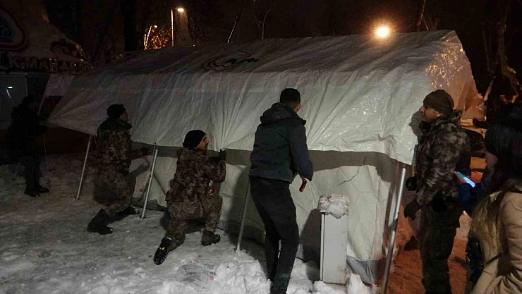 Depremler sonrası ekipler tarafından hızlı bir şekilde arama kurtarma çalışmalarına başlanırken, kentin birçok noktasında oluşturulan noktalarda mehmetçik çadır kurmaya başladı.