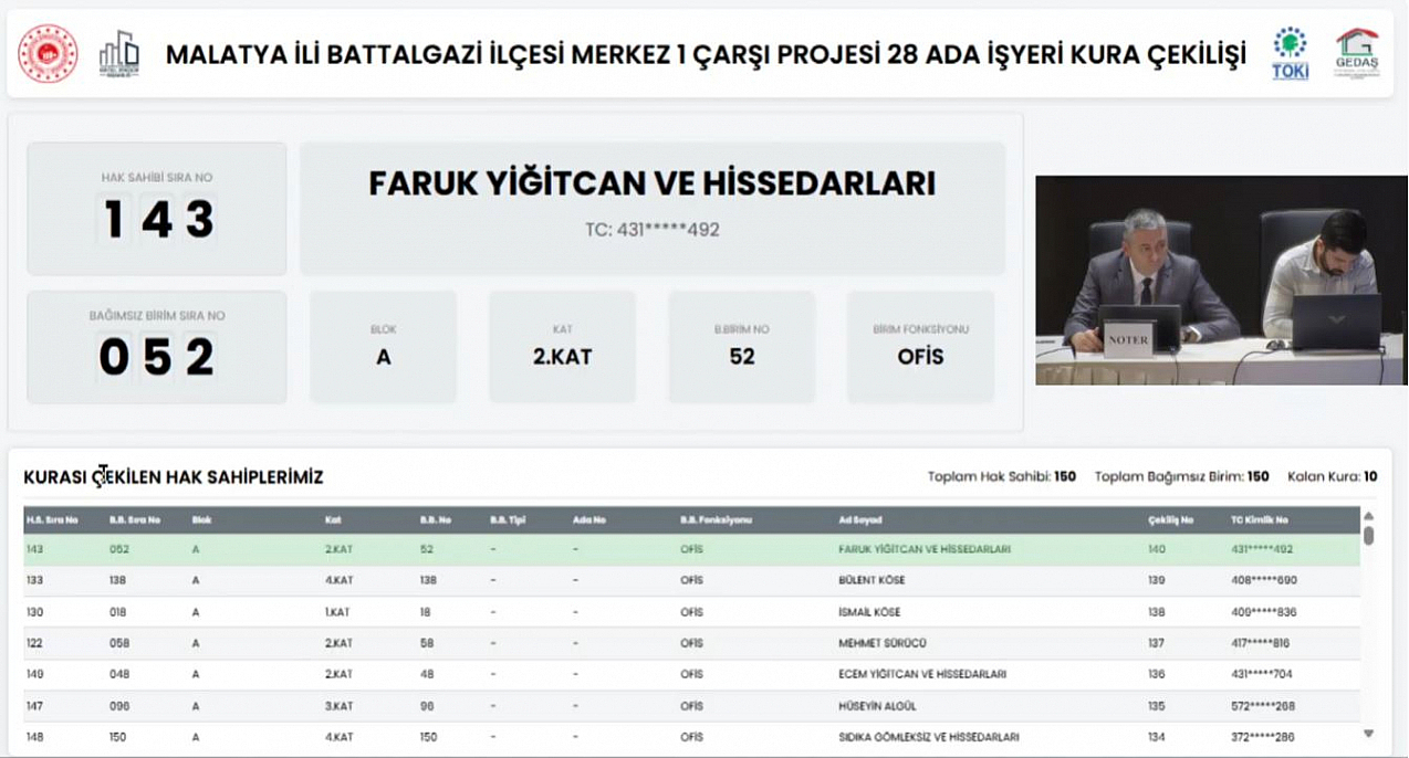 6 Şubat depremlerinde büyük yıkım yaşayan Malatya'da konut ve iş yeri inşa çalışmaları hızla sürüyor. Battalgazi ilçesine bağlı Merkez 1 Çarşı Projesi'nin 28. adasında yer alan ofislerin kura çekimiyle hak sahipleri belli oldu. İşte hak sahibi tam liste...