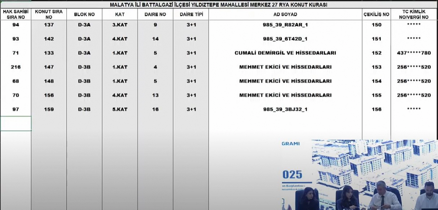 Malatya'da Merkez 27 Projesi kura sonuçları.... Hak sahipleri tam liste…
