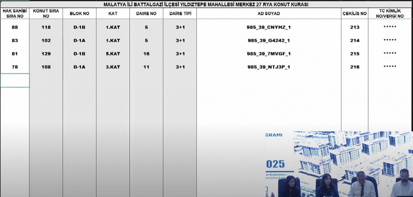 Malatya'da Merkez 27 Projesi kura sonuçları.... Hak sahipleri tam liste…