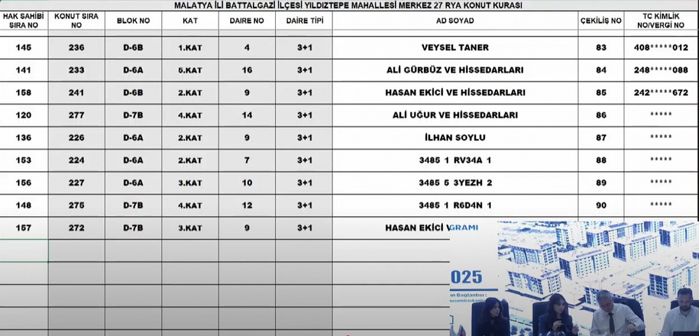 Malatya'da Merkez 27 Projesi kura sonuçları.... Hak sahipleri tam liste…