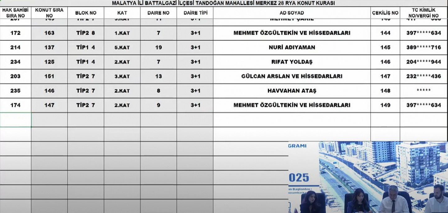 Malatya'da Merkez 28 Projesi kura sonuçları.... Hak sahipleri tam liste…
