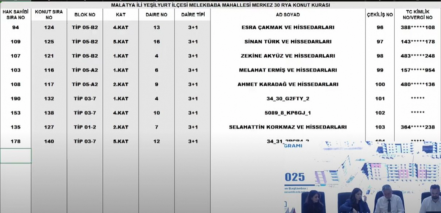 Malatya'da 6 Şubat depremlerinden sonra yapımı tamamlanan deprem konutlarının kurası çekiliyor. Merkez 30 Projesi kapsamında Melekbaba Mahallesi'ndeki 241 konutun kura çekimini sonuçları belli oldu İşte hak sahibi tam liste…