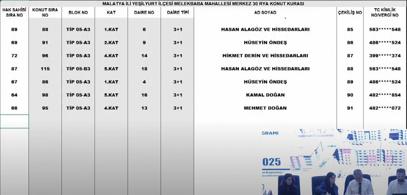 Malatya'da 6 Şubat depremlerinden sonra yapımı tamamlanan deprem konutlarının kurası çekiliyor. Merkez 30 Projesi kapsamında Melekbaba Mahallesi'ndeki 241 konutun kura çekimini sonuçları belli oldu İşte hak sahibi tam liste…