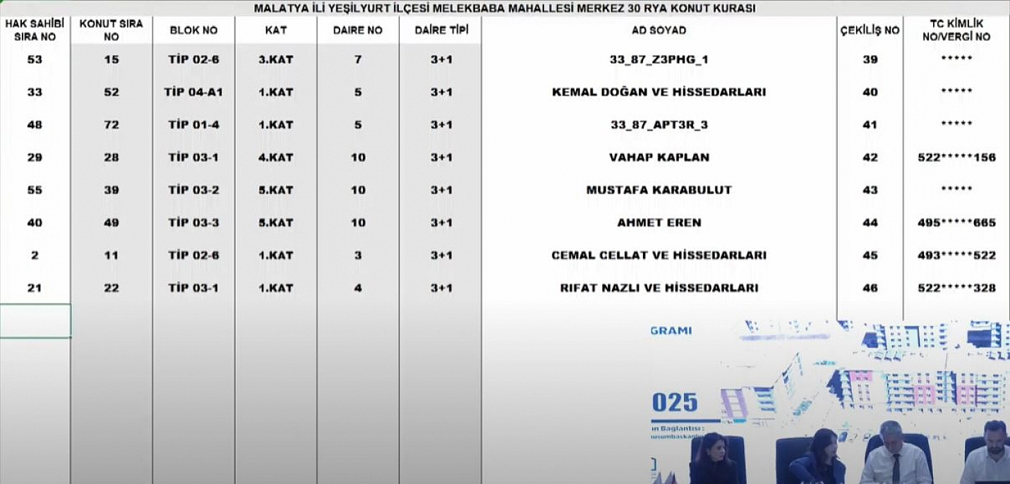 Malatya'da 6 Şubat depremlerinden sonra yapımı tamamlanan deprem konutlarının kurası çekiliyor. Merkez 30 Projesi kapsamında Melekbaba Mahallesi'ndeki 241 konutun kura çekimini sonuçları belli oldu İşte hak sahibi tam liste…