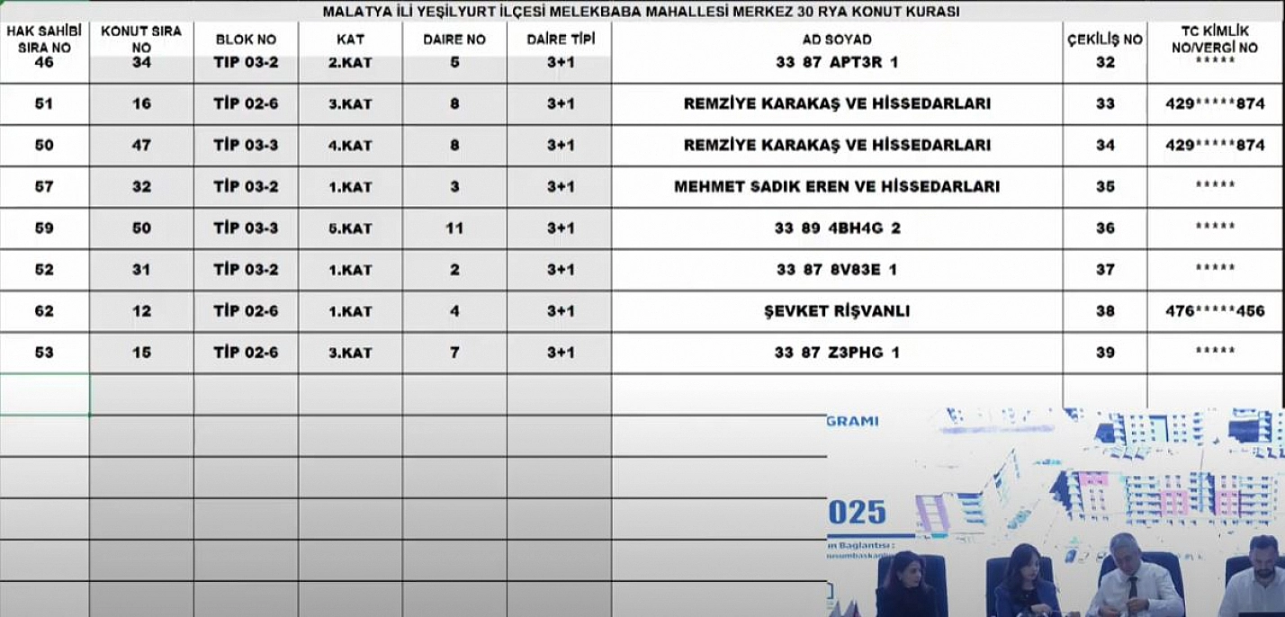 Malatya'da 6 Şubat depremlerinden sonra yapımı tamamlanan deprem konutlarının kurası çekiliyor. Merkez 30 Projesi kapsamında Melekbaba Mahallesi'ndeki 241 konutun kura çekimini sonuçları belli oldu İşte hak sahibi tam liste…