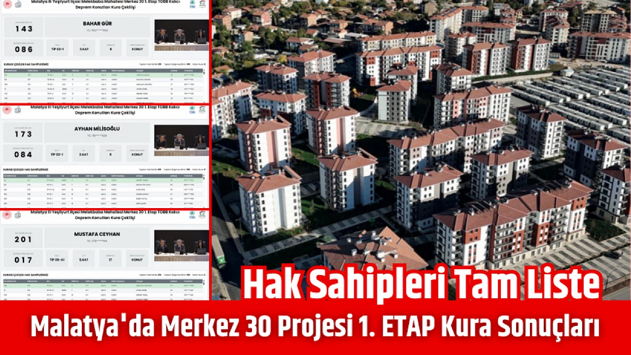 Malatya'da Merkez 30 Projesi kura sonuçları.... Hak sahipleri tam liste…