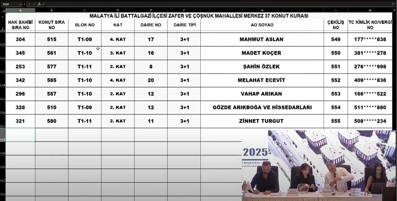 Malatya'da Merkez 37 Projesi kura sonuçları belli oldu: Zafer ve Çöşnük Mahallesi'nde hak sahipleri tam liste…