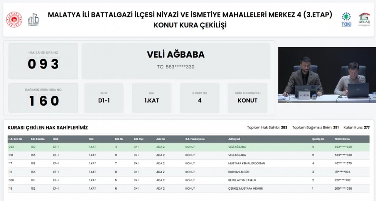6 Şubat depremlerinin ardından Malatya'nın birçok noktasında kalıcı konut ve iş yeri projeleri tamamlandı. Battalgazi ilçesindeki Merkez 4-3. Etap Projesi kapsamında Niyazi ve İsmetiye Mahalleleri'nde yer alan 283 konut için gerçekleştirilen kura çekimiyle hak sahipleri belli oldu.