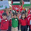 Malatya'da ilkokul öğrencileri İsrail'in Filistin'e yönelik saldırılarını protesto etmek amacıyla düzenlenen amacıyla koreografi ile Filistin bayrağı yaptılar.