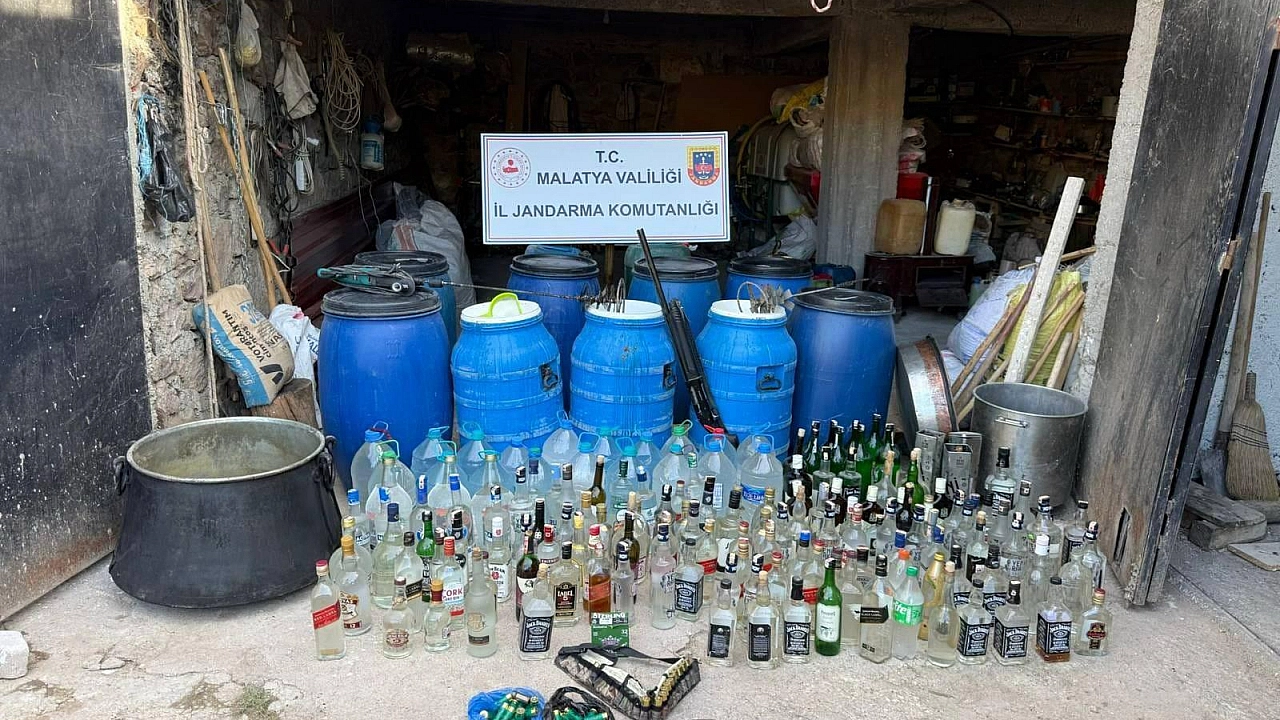 Malatya İl Jandarma Komutanlığı birimlerince gerçekleştirilen operasyonda, piyasaya sürülmeye hazırlanan 1.230 litre kaçak rakı ile birlikte ruhsatsız av tüfeği ve 39 adet av tüfeği fişeği ele geçirildi.