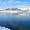 Sürgü Barajı'ndaki kış manzarası dron ile görüntülendi.