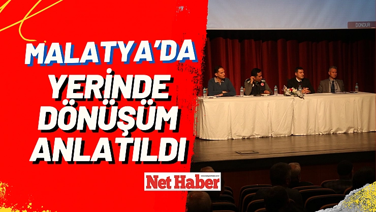 Altyapı ve Kentsel Dönüşüm Hizmetleri Genel Müdürlüğü ile Eğitim ve Yayın Dairesi Başkanlığı yetkililerinin katılımıyla yapılan bilgilendirme toplantısında, yapılarını bakanlığın kontrolünde yerinde dönüştürmek isteyenlere kendi binalarını, bir müteahhitlik grubuyla anlaşıp hibe ve krediden yararlanarak yapabileceklerini anlatan yetkililer, toplantıda muhtarların ve depremzedelerin ‘Yerinde Dönüşüm’ projesi hakkında yönelttiği soruları cevaplandırdı. Malatya Kongre ve Kültür Merkezinde gerçekleştirilen proje toplantısında Çevre, Şehircilik ve İklim Değişikliği Bakanlığı Altyapı ve Kentsel Dönüşüm Hizmetleri Daire Başkanı Ahmet Şahin, projeyle ilgili bilinmesi gerekenleri hak sahipleriyle paylaştı.