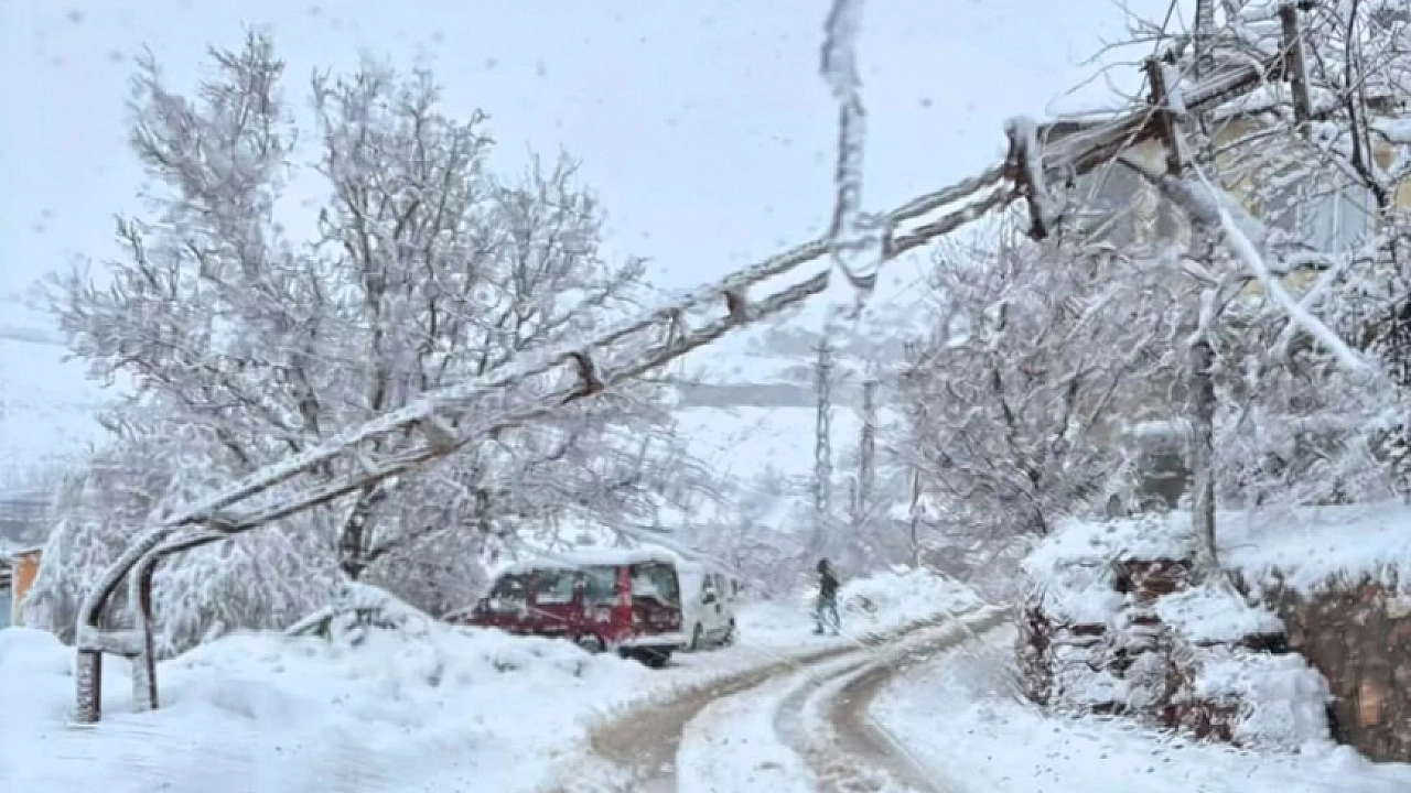 Malatya'da yoğun kar elektrik direğini yıktı, yol kapatıldı