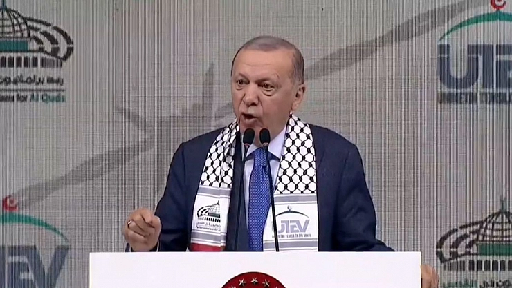 Erdoğan, Türkiye’nin Filistin’e vermiş olduğu desteğin gölgelenmeye çalışıldığını vurgulayarak, “Filistin davasını savunurken, ödediği bedeller ortadayken Türkiye düşmanlarının da sağladığı lojistik destekle birileri ülkemizin ve milletimizin Filistin direnişine verdiği güçlü desteği gölgelemeye çalıştı. Bu kirli kampanyayı meselenin aslını bilmediklerinden değil, hırsları akıl ve vicdanlarının önüne geçtiği için yürüttüler. ‘Jet yakıtı gönderdiler’ diyecek kadar ne yazık ki akıl, vicdan ve ahlak dışı bir sürü iddia gündeme taşındı. Daha vahimi, bu asılsız ithamların İsrail dahil Türkiye’nin dik duruşundan rahatsız olan yabancı odaklar tarafından uluslararası basında ve sosyal medya mecralarında köpürtülerek ülkemiz aleyhinde kullanılması çok yaralayıcıdır” diye konuştu.