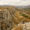 Malatya'nın Akçadağ ilçesindeki Levent Vadisi'nde, dik kaya bloğu üzerine çelik konstrüksiyonla inşa edilen cam zeminli seyir terası, ziyaretçilerin akınına uğruyor.