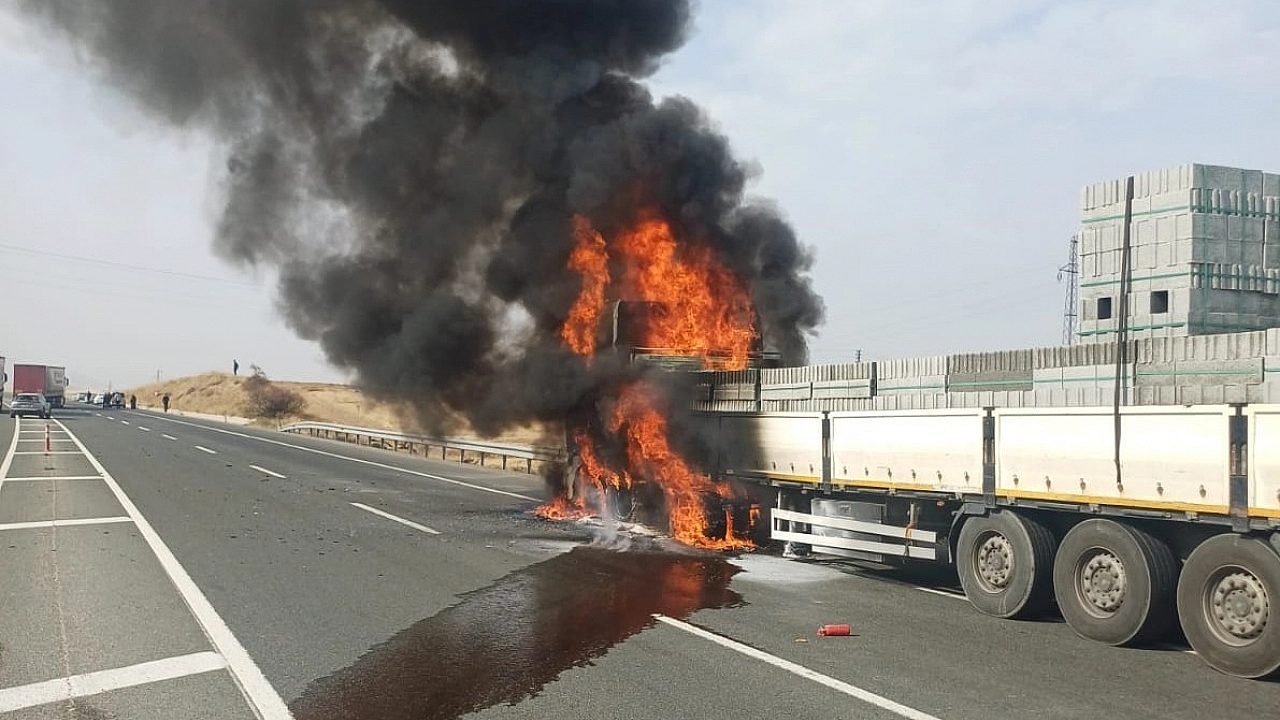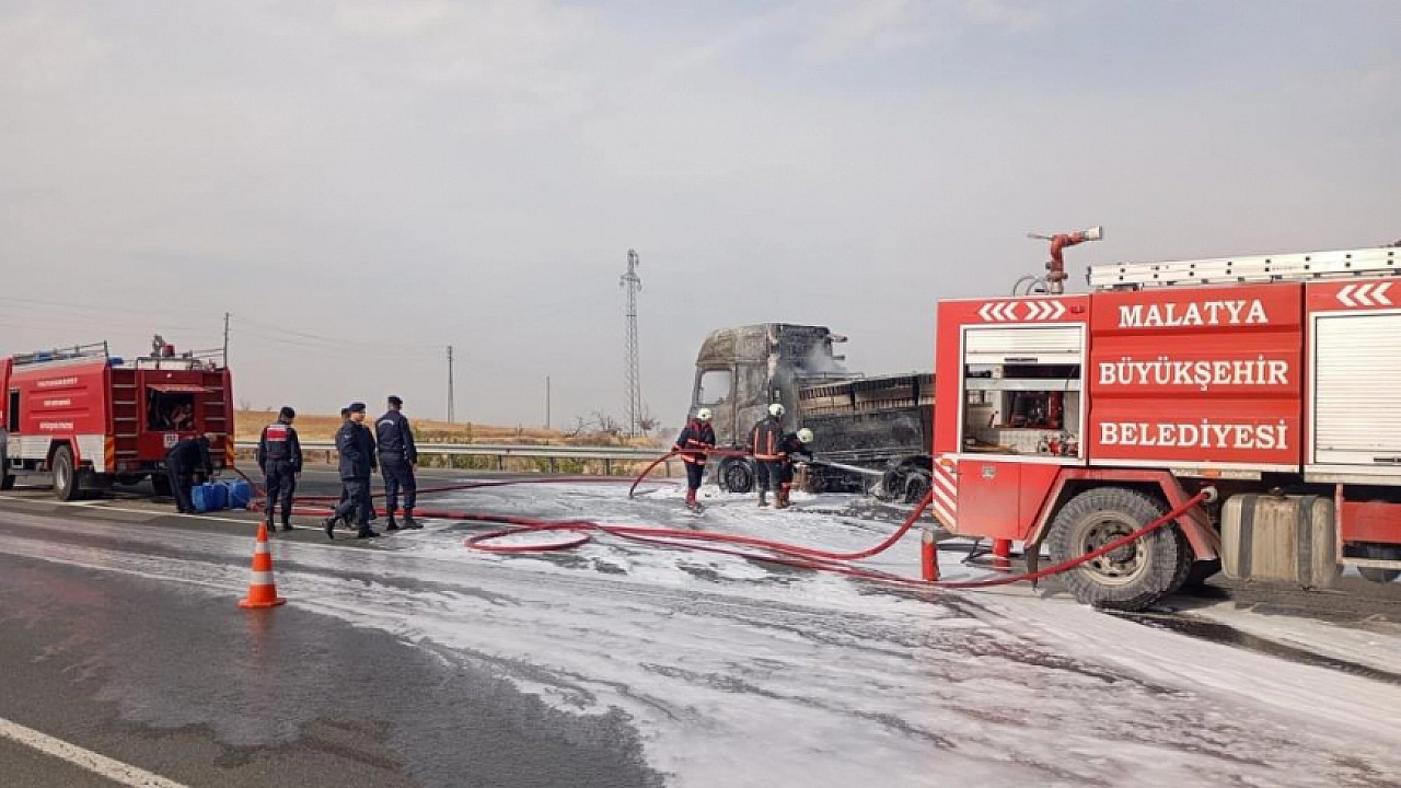 Malatya-Elazığ Karayolu’nun Kale ilçesi mevkiinde seyir halindeki inşaat malzemesi yüklü bir tırda yangın çıktı. Henüz belirlenemeyen bir nedenle başlayan yangın, kısa sürede aracın kasasını sardı. İhbar üzerine olay yerine itfaiye, jandarma ve polis ekipleri sevk edildi. Bölgeye ulaşan itfaiye ekipleri, yangına müdahale ederek alevleri kontrol altına aldı.